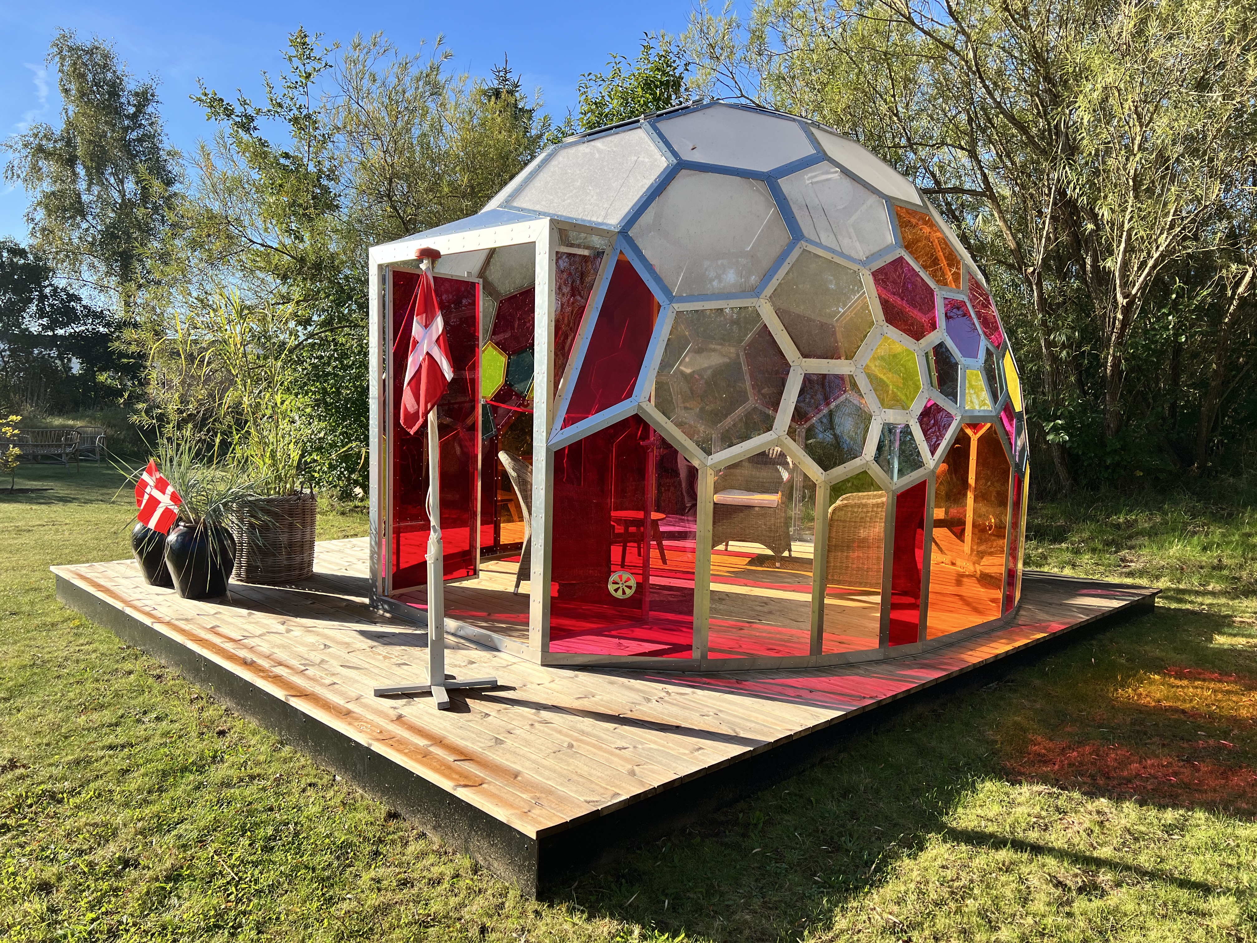 Med støtte fra Nykredits Fond får Familiehuset på Trehøjevej en udendørs kuppel, som kan skabe gode rammer for samtaler og forløb med børn og familier. Det nye udendørs behandlingsrum blev indviet i dag.